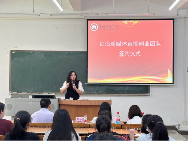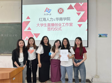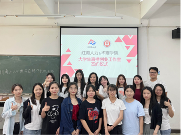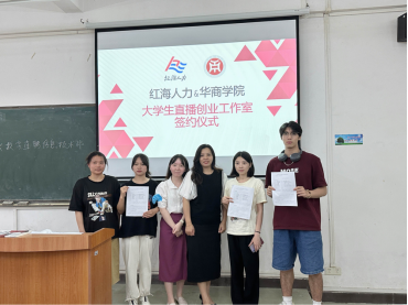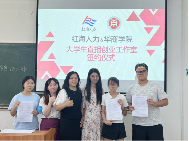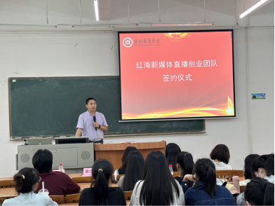 2023年5月30日下午14时00分,广州华商学院管理学院与广州红海瀚洋人才服务有限公司共同举行“红海新媒体直播创业团队”签约仪式,仪式在励志楼C106进行。