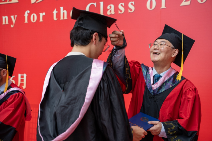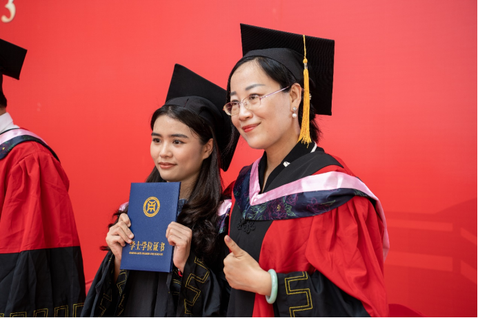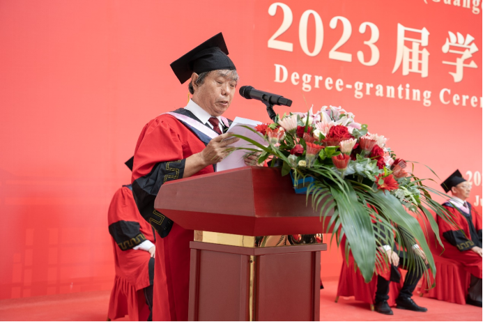 广州华商学院刘少波副校长宣读《广州华商学院关于2023年6月普通高等教育本科毕业生学士学位授予的决定》。随后,毕业生们轮流上台,由主礼教授为他们正冠拨穗,颁发学士学位证书,毕业生对主礼教授表示感谢热情互动留下了珍贵合影。