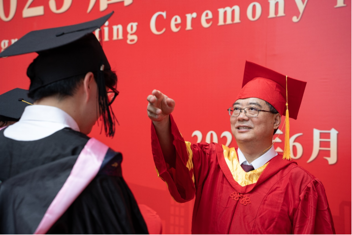 最后,李招忠院长深情寄语毕业生们,主礼教授颁发的学士学位证书,记录着毕业生在华商学院的执着拼搏和奋斗历程,渗透着一份神圣和庄严的责任,更凝聚了母校对毕业生的殷切期望,他代表管理学院全体师生对全体毕业生致以美好的祝愿,祝愿毕业生们前程似锦,未来可期。