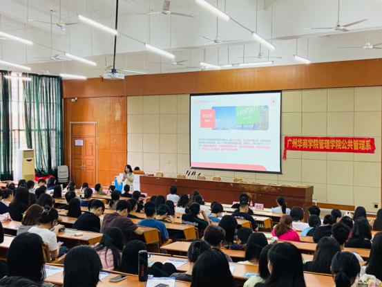 接着由管理学院创新创业秘书、行政管理专任教师杨惠茜老师从大学生创新创业的意义、管理学院创新创业的成果、管理学院创新创业组织进行介绍,希望各位新生在大学期间结交更多优秀的老师和同学、享受良好的创新创业环境和友好舒适的交流氛围,积极参加各种创新创业交流活动,创造更多竞赛获奖的机会,成为更好的自己。