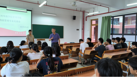 为营造学习氛围,帮助2023级新生们了解物流管理专业的学习方向和发展前景,广州华商学院管理学院于2023年的9月14日下午4时在四会校区16号楼505教室召开了物流管理专业教育会。管理学院副院长秦陇一教授、工商管理系副主任韩波勇老师以及2023级物流管理专业全体新生参加了此次会议。