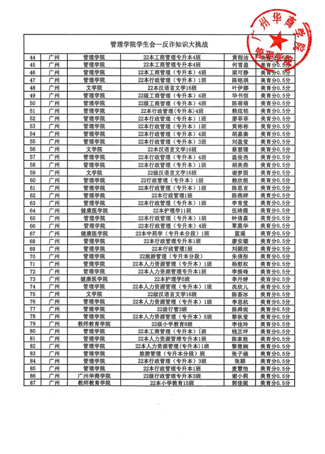 管理学院——反诈知识大挑战 活动加分名单 加分证明 管理学院——反诈知识大挑战 活动加分名单 本次加分证明为盖章版PDF 仅作公示,不支持任何修改 有需要的同学可自取,进行加分证明 编辑 | 管理学院学生会新媒体部邓咏琪 文字丨管理学院学生会主席团何雪盈 初审 |管理学生会 复审 | 何雪盈 终审 | 吴锦涛 罗玉凤 上一条:管理学院关于2024-2025学年第二学期2-3月考勤情况的通报 下一条:校运会特辑|广州华商学院第十四届运动会圆满结束 【关闭】