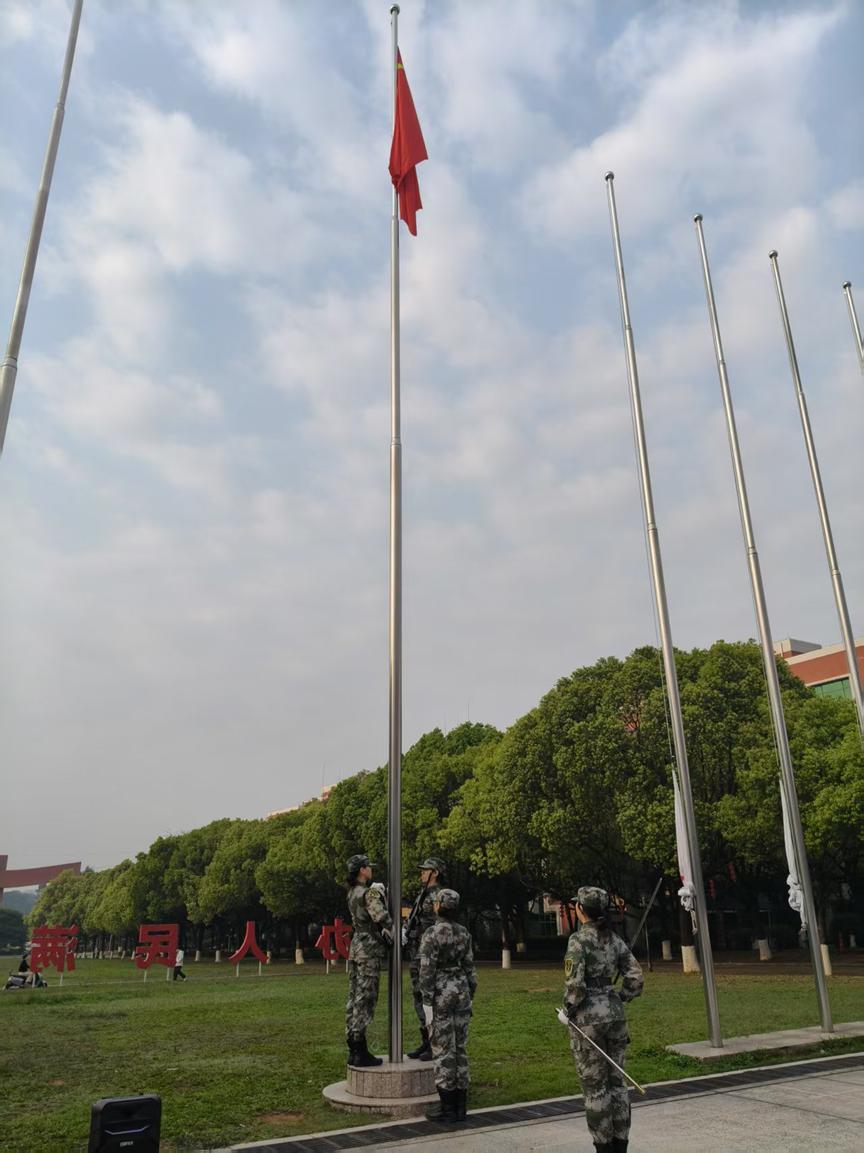 随着激昂的《义勇军进行曲》响起,护旗手迈着铿锵有力的步伐护送国旗入场。全体师生庄严肃立,齐唱国歌,注视着五星红旗冉冉升起,飘扬在校园上空,爱国之情在每个人心中澎湃。