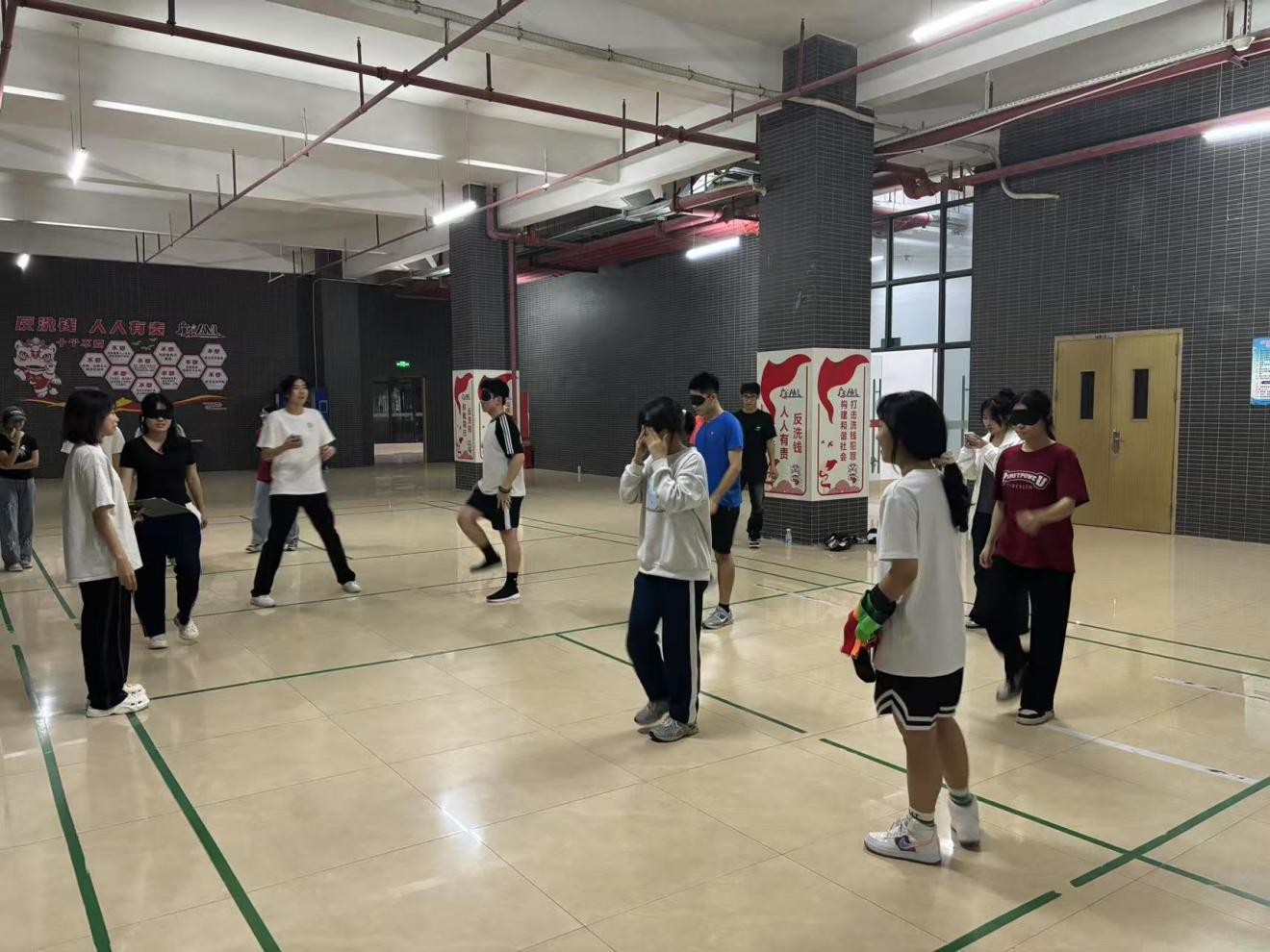 紧接着让我们来到以“力行雷锋志,同心树新风”为主题的环节二。本环节共进行三轮,每小组各派出一个人,合成一个参赛组,每位参与者站在指定的起始位置,这个位置可以用一个明显的标记,例如瓷砖。参与者戴上眼罩,确保眼睛完全被遮住,看不到任何光线和周围的环境。游戏开始后,参与者在原地开始踏步,要求保持正常的步频,倒计时1分钟。时间结束后,参与者停止踏步。由工作人员或其他未参与游戏的人记录参与者的位置,测量每位参与者与起始位置的距离,距离起始位置最近的参与者获胜。第一名小组加8分,第二名小组加7分,以此类推,最后一名小组不加分。