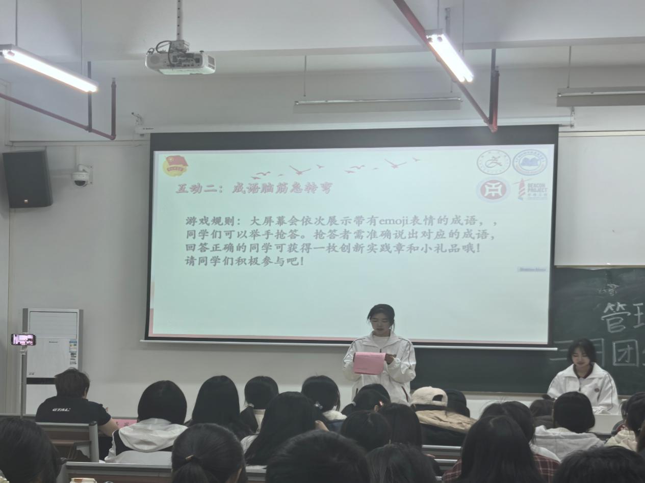 紧接着,大会就进行到了趣味横生的互动环节。同学们积极踊跃地参与两轮有趣的游戏,大会现场洋溢着欢快的氛围。