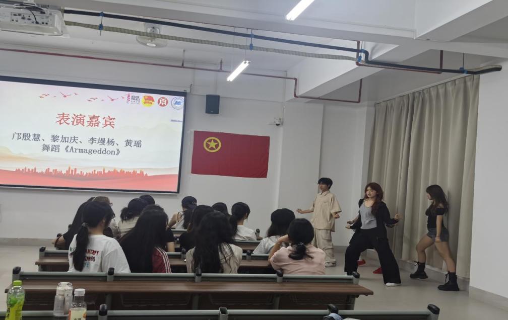 互动环节结束后,由表演节目的邝殷慧、黎加庆、李墁杨、黄瑶同学一同带来一支热舞,引发全场共鸣,将气氛推向高潮。