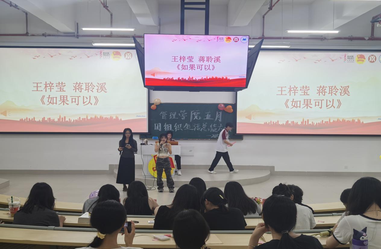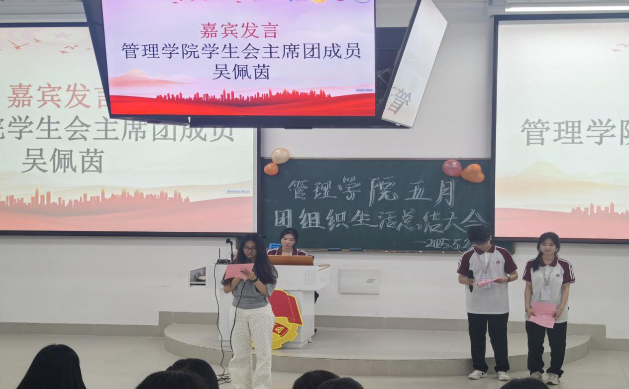 令人振奋的颁奖环节结束后,由管理学院学生会主席团成员吴佩茵师姐上台发言,为本月的团生活动做出总结。