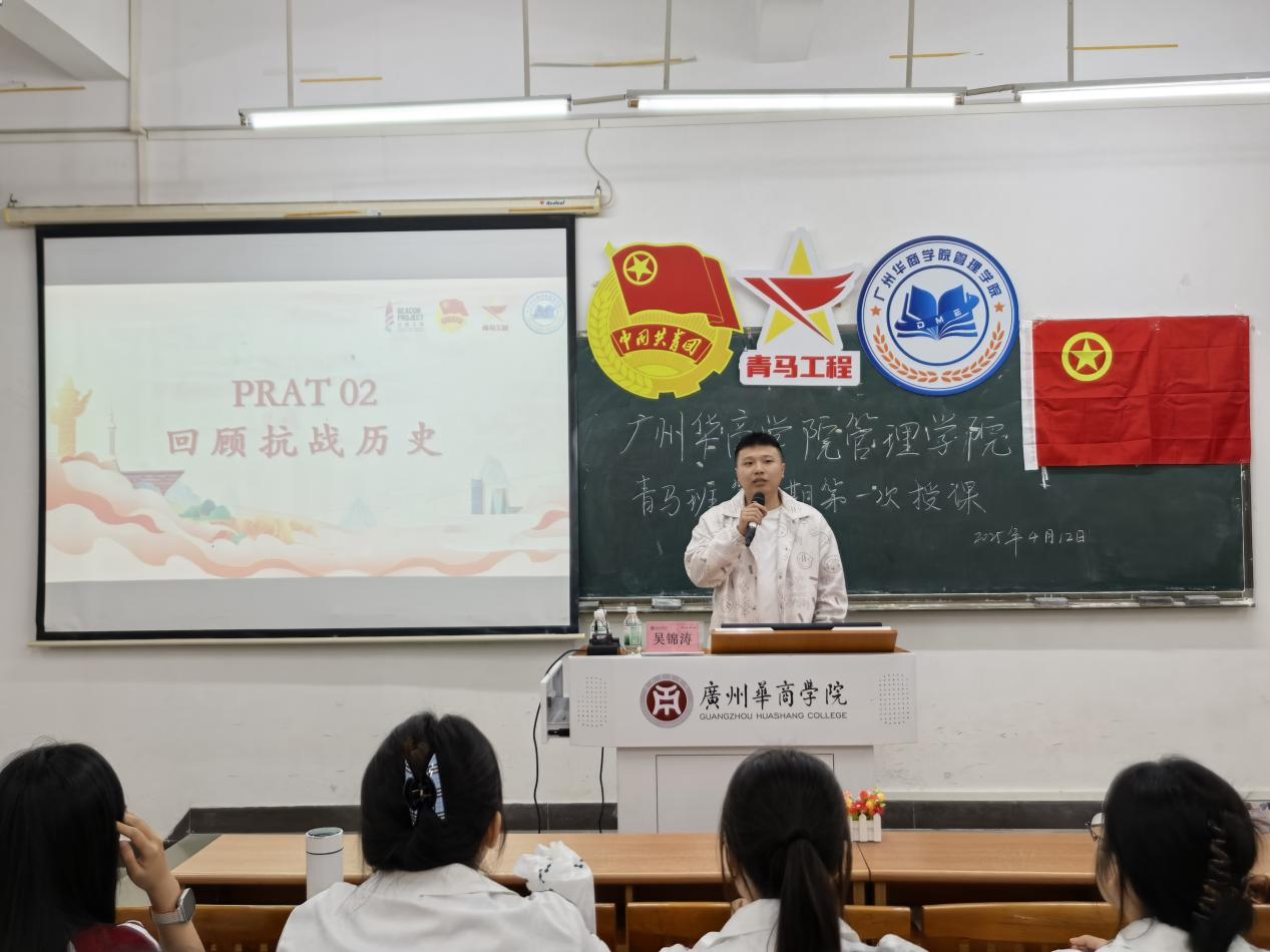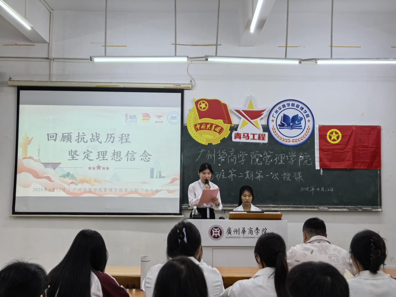2025年4月12日,管理学院团委在广州校区励志楼C304和肇庆校区16号楼207同步开展了管理学院第二期青马班第一次授课。本次课程由管理学院团委书记吴锦涛老师进行授课,以"回顾抗战历程,坚定理想信念"为主题,通过回顾抗战历史,带领学员进行理论视频学习,在理论与实践的交织中锻造青春信仰。