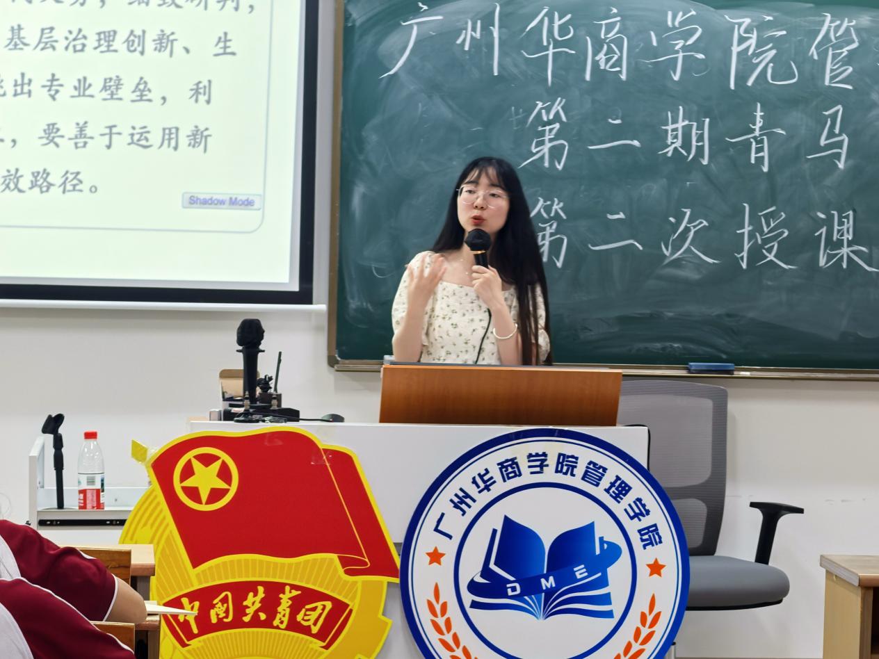 管理学院团委于2025年4月19日在肇庆校区16号楼503开展了管理学院第二期青马班第二次授课,广州校区通过腾讯会议同步进行授课。本次课程由管理学院团委副书记魏巍老师进行授课,以"奋进新时代,坚持守正创新相结合"为主题,老师带领同学们廓清思想迷雾,明晰奋斗方向,坚定对马克思主义的信仰,筑牢精神之基。