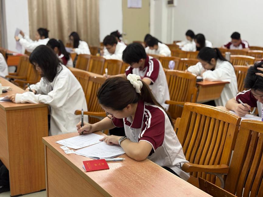 学员们迅速进入状态,认真审题,笔尖在试卷上沙沙作响。考场内一片寂静,只听见时钟的滴答声和偶尔的翻页声,考生们全身心地投入到考试中去。工作人员在考场内来回巡视,密切关注着考生们的动态,确保考试的公平公正。