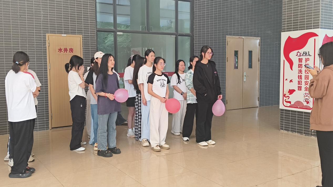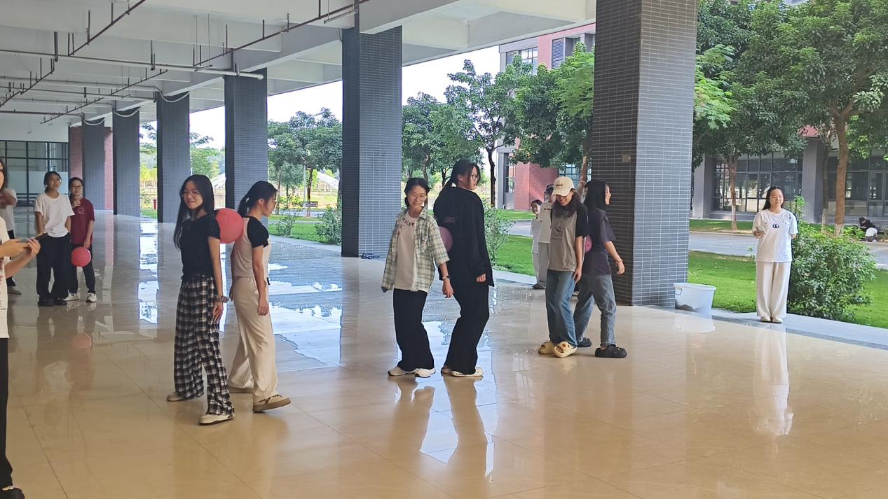 “学全会精神,做有为青年”护球前行挑战,每组2名成员背靠背夹紧气球,双手前伸或自然下垂,在不能触碰气球的前提下向终点奋进。气球掉落或爆破需返回起点重始,原地罚时的规则让比赛更具挑战性。队员们步调一致、默契配合,在紧张的计时中展现了“凝心聚力”的团队精神,恰如青年一代在强国建设路上携手同行的坚定姿态。