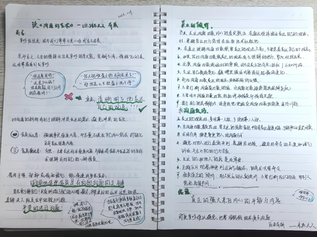 一张张笔记尽显匠心:有的以“三色标注+知识框架图”搭建清晰的阅读体系,有的用“案例补充+心得随笔”丰富内容维度,还有的以“时间轴+人物关系图”梳理书籍脉络。这些笔记不仅是阅读内容的凝练,更是学子们治学态度的生动体现,经严格评审,10份兼具美观度与实用性的笔记获评“最美笔记”。