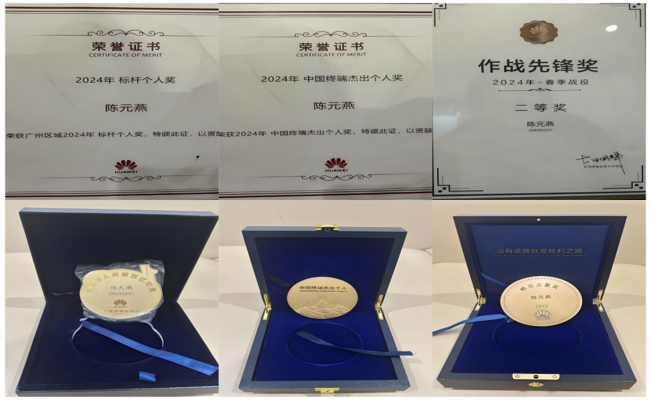2022年入职深圳慧通商务有限公司广州分公司,现任华为广东终端广州区域零售运营专员,入职三年来迅速成长,凭借出色的工作表现,荣获“中国终端杰出个人”“服务价值贡献奖”“作战先锋奖”“春季作战先锋奖”等多项荣誉。
