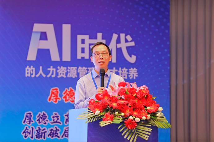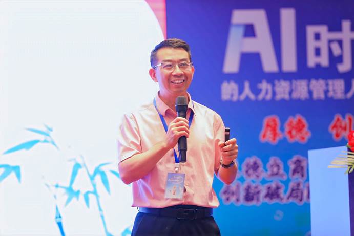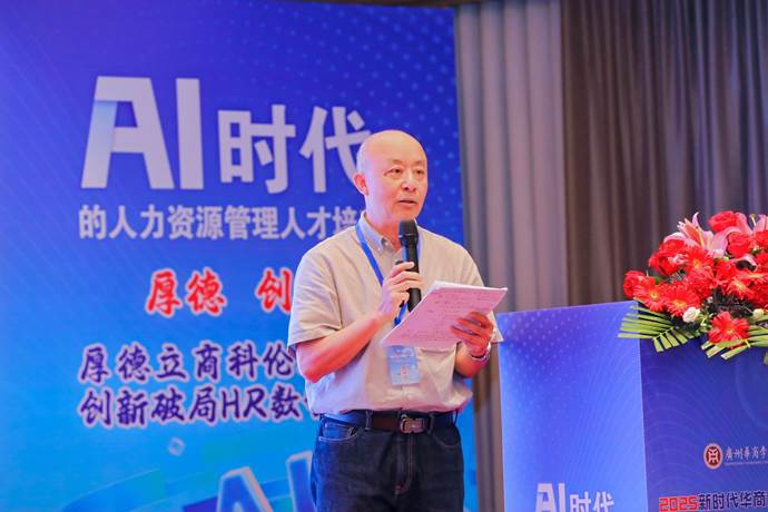 在主旨演讲环节,来自不同领域的嘉宾分享了他们对AI时代人力资源管理人才培养的深刻见解。广东省人力资源研究会会长谌新民教授围绕优化人才生态展开,深入探讨人力资源管理专业的发展方向以及学生培养的重点。分析了人口结构呈现少子化、老龄化,科技变革带来人工智能和数字化重塑劳动力市场等宏观背景,同时指出政策碎片化、供需脱节等政策挑战。强调广东因经济转型对人才求贤若渴,需依靠产业与税收政策广纳英才,通过营造城市生态、以产业为导向构建人才政策框架等措施,引领大湾区产业创新发展。