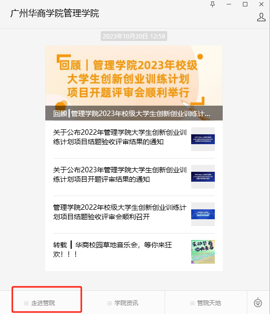 ②进入主界面,点击“走进管院”