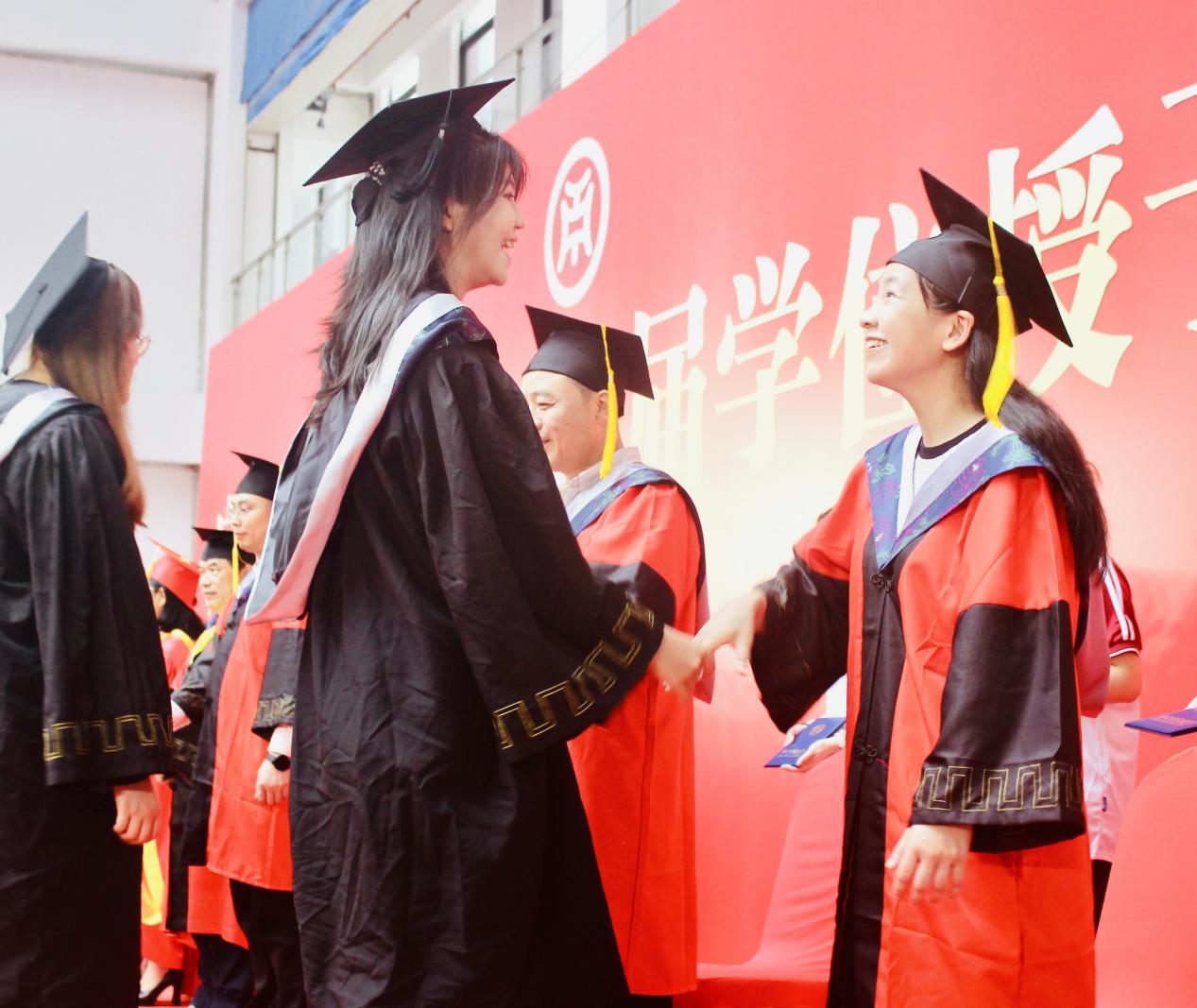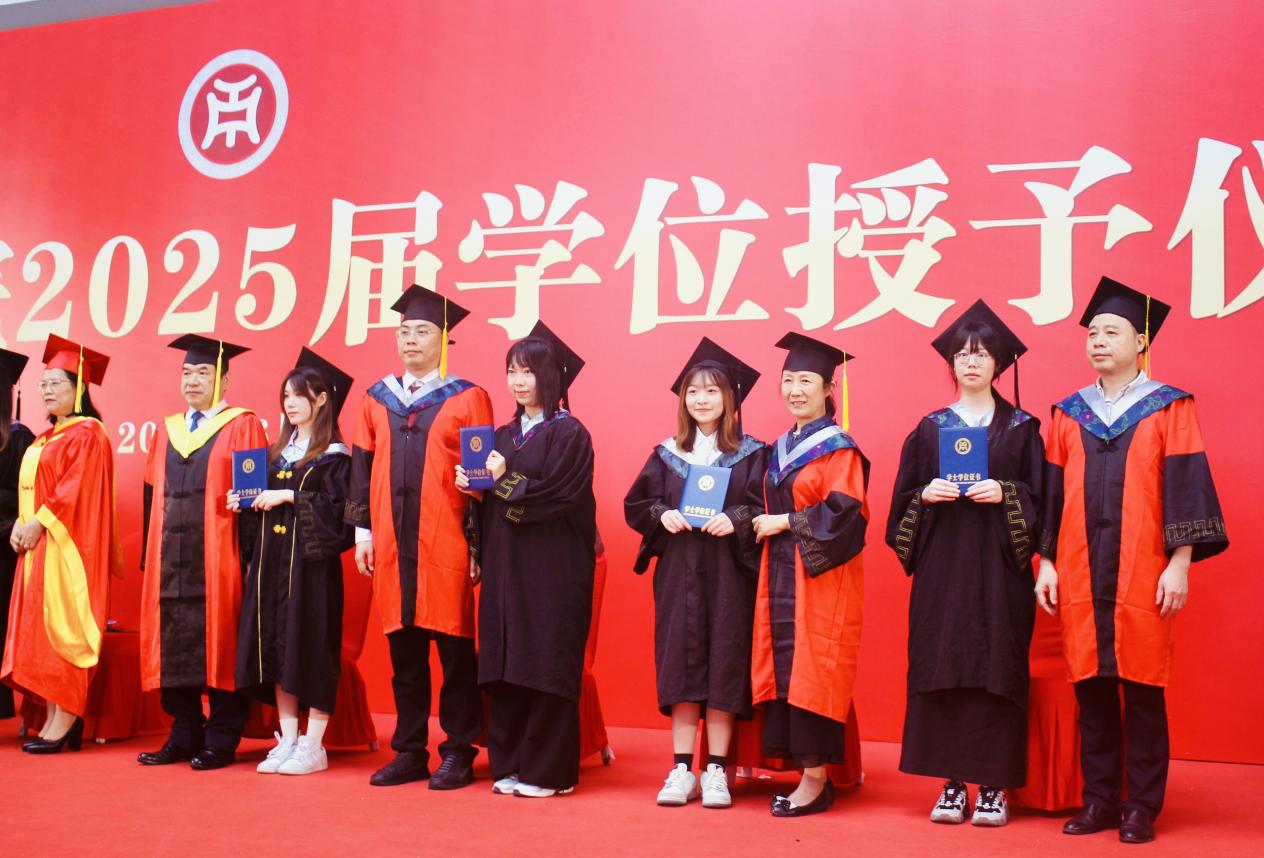 本次大会由管理学院副院长袁仕海主持,在庄重而热烈的氛围中,广州华商学院党委书记陈玉欢郑重宣读《广州华商学院关于2025年6月普通高等教育本科毕业生学士学位授予的决定》。随着宣读完毕,学位授予仪式正式拉开帷幕。毕业生们怀着激动与期待,有序走上台,接受导师团拨穗礼,这一仪式象征着他们学业的圆满与人生新阶段的开启。随后,他们双手接过承载着多年努力与梦想的学士学位证书。