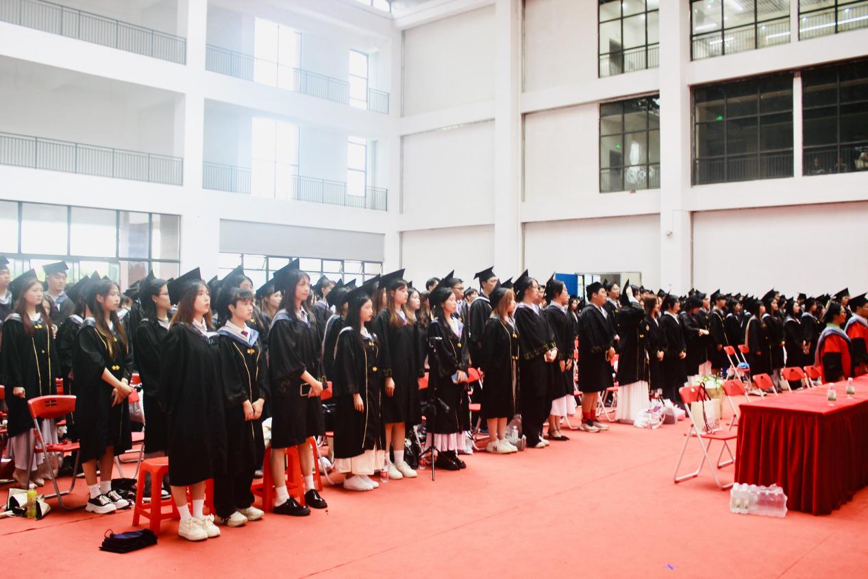 下午2点,授予仪式开始,在激昂的进行曲中,导师团步伐铿锵地步入会场,热烈的掌声瞬间响彻大厅。身着笔挺学位服的毕业生们,身姿挺拔地伫立在人生的重要转折点上,眼中既有对往昔校园岁月的眷恋,更饱含对未来征途的无限憧憬。国歌奏响时,全体师生齐声高唱,激昂旋律里涌动着对祖国的深情告白,也承载着毕业生们迈向新征程的坚定信念与蓬勃力量。