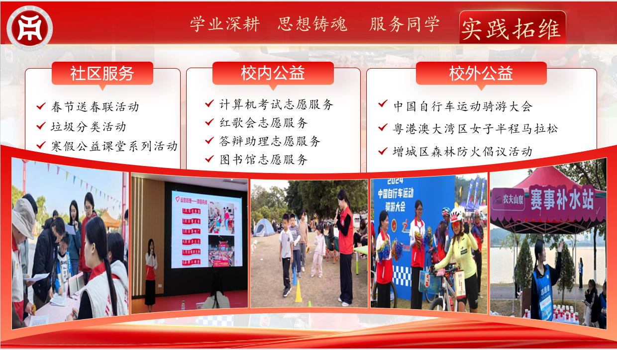 积极发挥先锋模范作用,参与2次无偿献血,并投身于2024中国自行车运动骑游大会、2025粤港澳大湾区女子半程马拉松等多项志愿服务,累计服务时长807个小时;