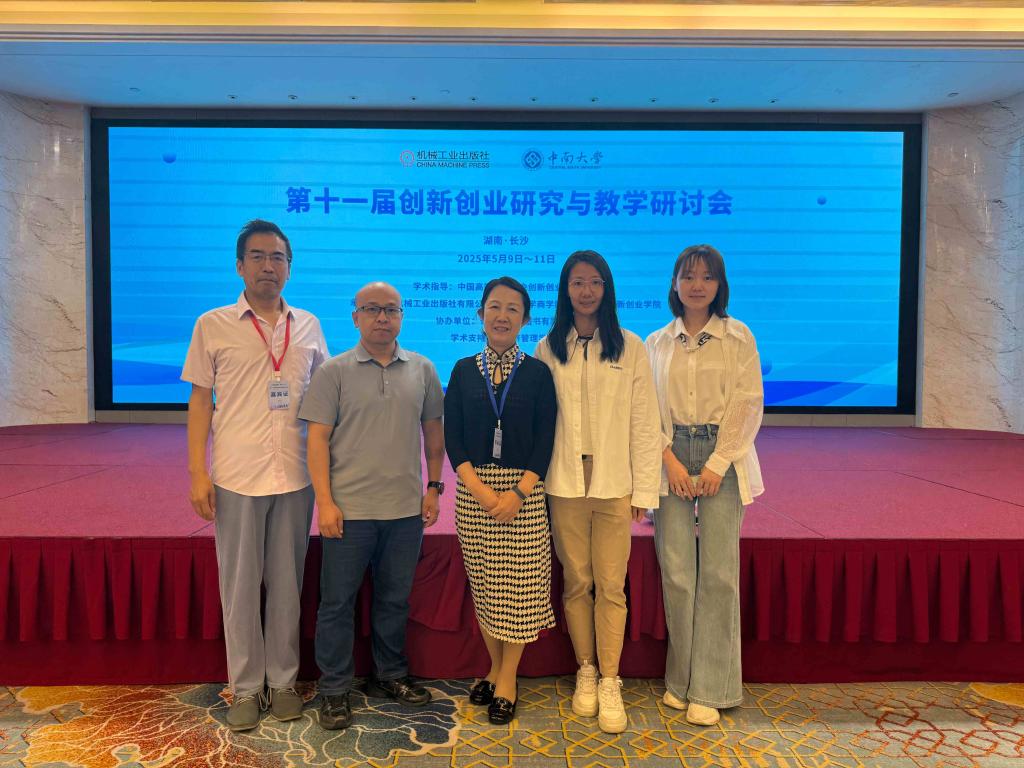 在国家大力推动创新创业教育与产教融合的背景下,我院于 2025 年 5 月 9 日至 11 日组织马航通、高环成、金明华、罗嘉欣、袁方方 5 位教师参加由机械工业出版社有限公司、中南大学商学院、中南大学创新创业学院共同承办的 “第十一届创新创业研究与教学研讨会”。会议在湖南长沙顺利召开。