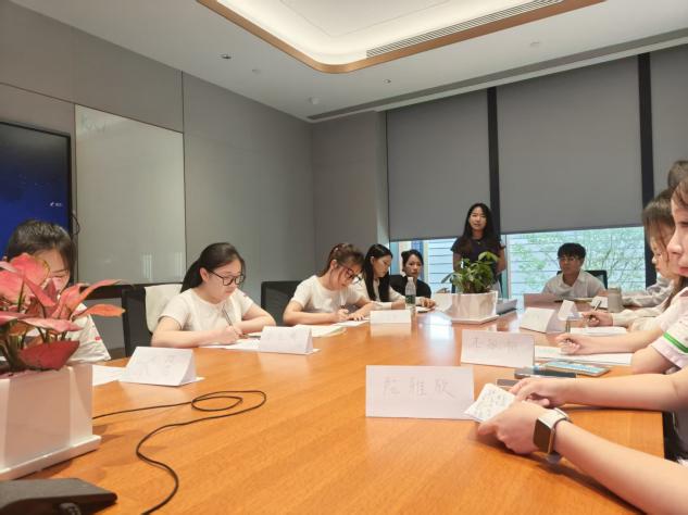 经过前期简历筛选和性格测评,12名优秀学子脱颖而出,获得最终面试资格。在管理学院老师信鸽的带领下,同学们抵达慧通广州总部,受到人力资源经理田昕的热情接待。田经理带领大家参观了办公环境及食堂、健身房、休闲花园等配套设施,让同学们直观感受了慧通的工作与生活氛围。